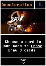 Acceleration was originally added as Bravery's second Epic Spell in Beta 11.0 during the Undercards 1 year Anniversary. It was also the second of the two leaked on Twitter, the first being Last Dream. It was replaced by Overheat in Beta 42.0, and was reintroduced in Beta 43.0 as Bravery's third Common Spell and first Deltarune Spell.